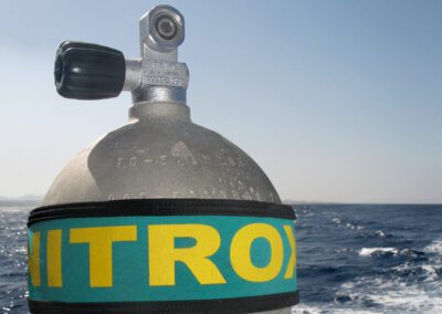|  | Der Einstieg in das Tauchen mit Gasgemischen beginnt mit diesem Kurs. Hierfür stehen keine Tauchgänge auf dem Programm, doch die Praxis kommt trotzdem nicht zu kurz. Du wirst mit der Planung, Vorbereitung und Durchführung von Nitroxtauchgängen vertraut gemacht, lernst die besonderen Probleme und Gefahren zu beherrschen, die Ausrüstung zusammenzustellen und die Sicherheitsanforderungen zum Umgang mit Nitrox und Sauerstoff kennen. Die Gasgemische enthalten dabei ausschließlich Stickstoff und Sauerstoff mit einem Sauerstoffanteil von maximal 40%. Am Ende des Kurses wirst Du sichere Nitrox-Tauchgänge innerhalb der oben genannten Grenzen durchführen können. Nach erfolgreicher Teilnahme erhältst Du die offizielle Lizenzkarte sowie einen Einkleber für den Taucherpass.