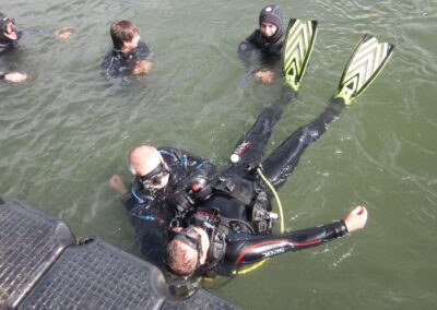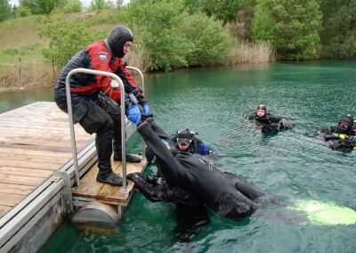 |  | In diesem Aufbaukurs wirst Du in Theorie und Praxis mit der vorbeugenden Unfallvermeidung und den bei einem Tauchunfall zu ergreifenden Maßnahmen vertraut gemacht. Dazu zählen das Durchführen von Rettungs-, Berge- und Transporttechniken im Wasser und an Land sowie Erste-Hilfe und Reanimation, Kenntnisse zum effizienten Rettungs- und Signalmitteleinsatz und der Rettungskette. Bei der Tauchgangsplanung gehört das Einschätzen von Risikosituationen dazu. Nach erfolgreicher Teilnahme erhältst Du die offizielle Lizenzkarte sowie einen Einkleber für den Taucherpass.