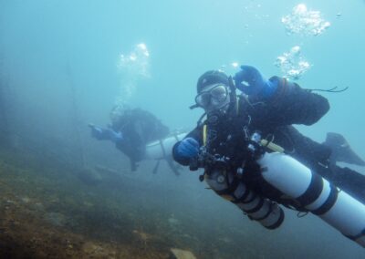 |  | Sidemount-Tauchen ist der neue Trend zu tauchen, bei dem die Flaschen seitlich am Körper getragen werden und ermöglicht eine rückenentlastende Bewegungsfreiheit. In diesem Kurs lernst Du die Sidemount-Konfigurationen bei Sporttauchgängen im Freiwasser kennen. Außerdem erlernst Du die spezifischen Tauchfertigkeiten, Tarierung und Trimm, Ausrüstungsmerkmale und Streamlining sowie das Gasmanagement mit zwei Flaschen, den Umgang mit “out-of-gas”-Situationen und den Rettungsaufstieg in Sidemount-Konfiguration. Nach erfolgreicher Teilnahme erhältst Du die offizielle Lizenzkarte sowie einen Einkleber für den Taucherpass.